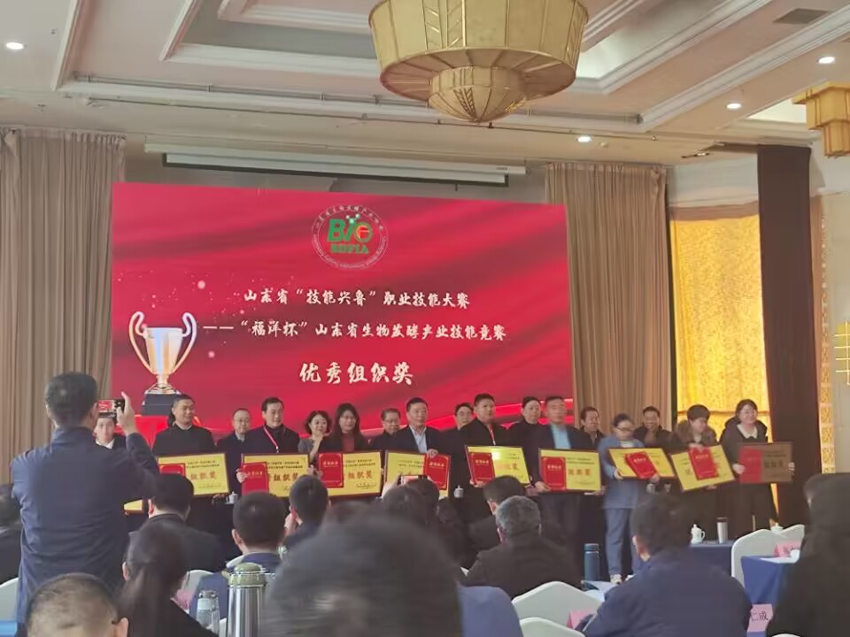 大會對《2022年山東省“技能興魯”職業技能大賽——“福洋杯”山東省生物發酵產業職業技能競賽》獲獎的29個優秀組織單位、25名優秀指導老師進行表彰并頒發證書和獎牌,其中天泰榮獲《優秀組織單位》獎。